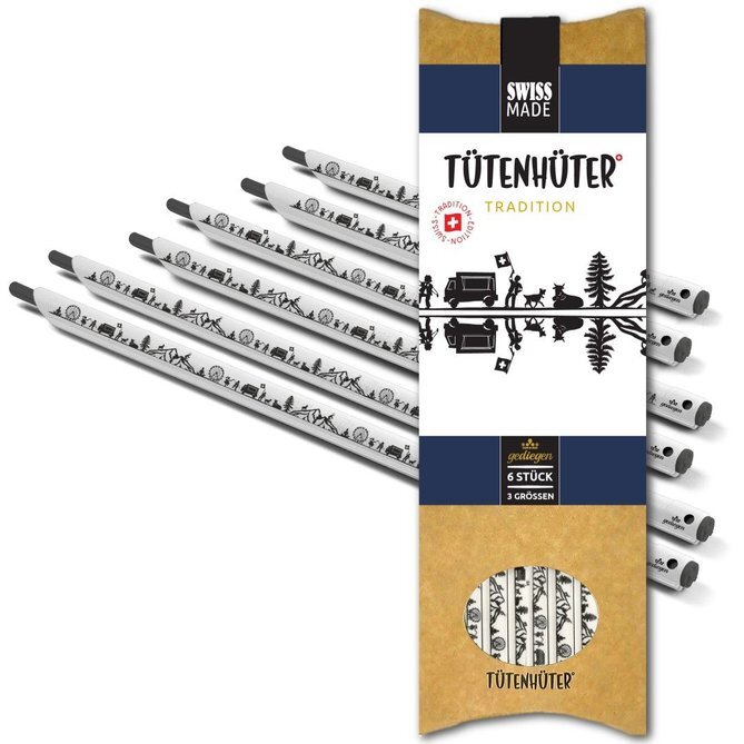 «Tradition mit Innovation» ist das Motto bei gediegen, dem Entwickler von nachhaltigen Papier-Verpackungsmöglichkeiten für allerlei Lebensmittel. Der pfiffige Papier-Beutel «Wilhelm» wiederum kann ganz einfach mit einem Tütenhüter verschlossen werden. Der bekannte gediegen-Scherenschnitt macht sich auch auf dem Tütenhüter ganz wunderbar.